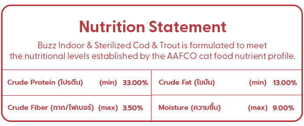 Buzz Netura – Indoor & Sterilized Formula offers holistic nutrition for indoor, sterilized, and senior cats (7+). Made with premium cod and trout, this grain-free diet supports weight management, urinary health, and joint mobility. Enriched with superfoods, it ensures optimal vitality for aging pets.